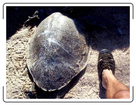 Dead sea turtle washed up on the beach.