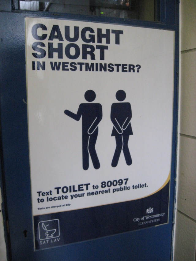 You can text to find the nearest public toilet. That’s an improvement.