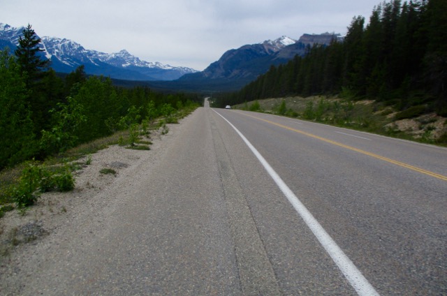 Big smile here. Finally I topped Sunwapta Pass, the boundary between Banff and Jasper National Parks. Only 108 km of my 400 route. But by far the most difficult section was behind me.