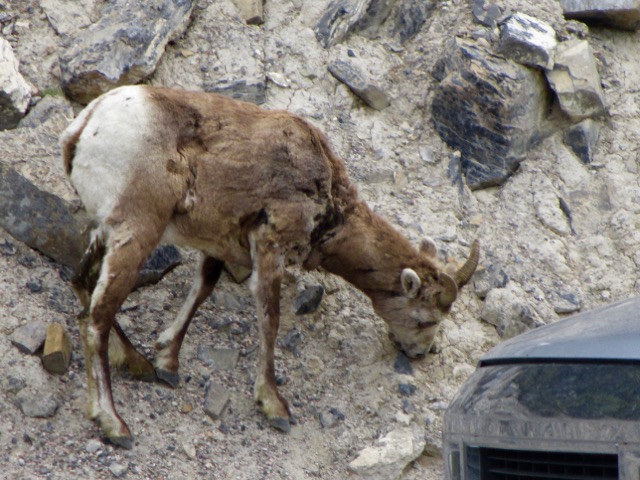 I stopped at the Icefield Interpretive Centre. Swarming with tourists. The Athabasca Glacier is the most visited in North America. This highway is called the Icefields Parkway.