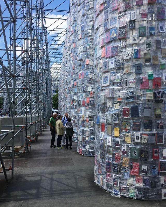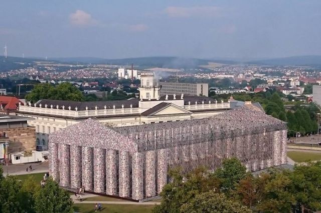 The Parthenon of Books in Kassel, Germany is part of the Documenta 14 art festival. With the help of students from Kassel University, Minujín identified over 170 titles that were or are banned in different countries around the world, and constructed the full-size replica of the iconic temple from those books, plastic sheeting, and steel. …