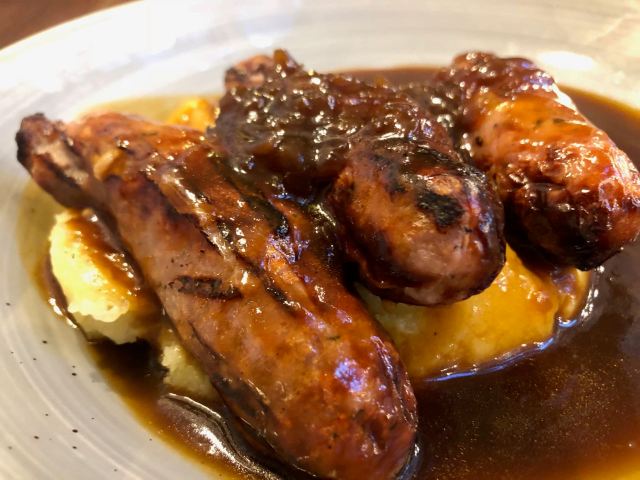 I asked the barkeep for a recommendation. He suggested bangers and mash.