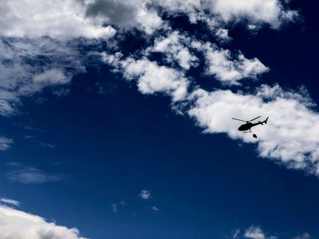 We sat in the sun and watched helicopters trying to douse the flames.