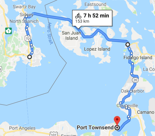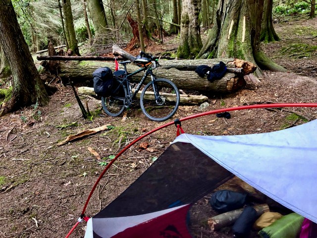 Happily the Washington Park campground, up from the ferry landing, had hiker / cyclist campsites for $10. Free hot showers.