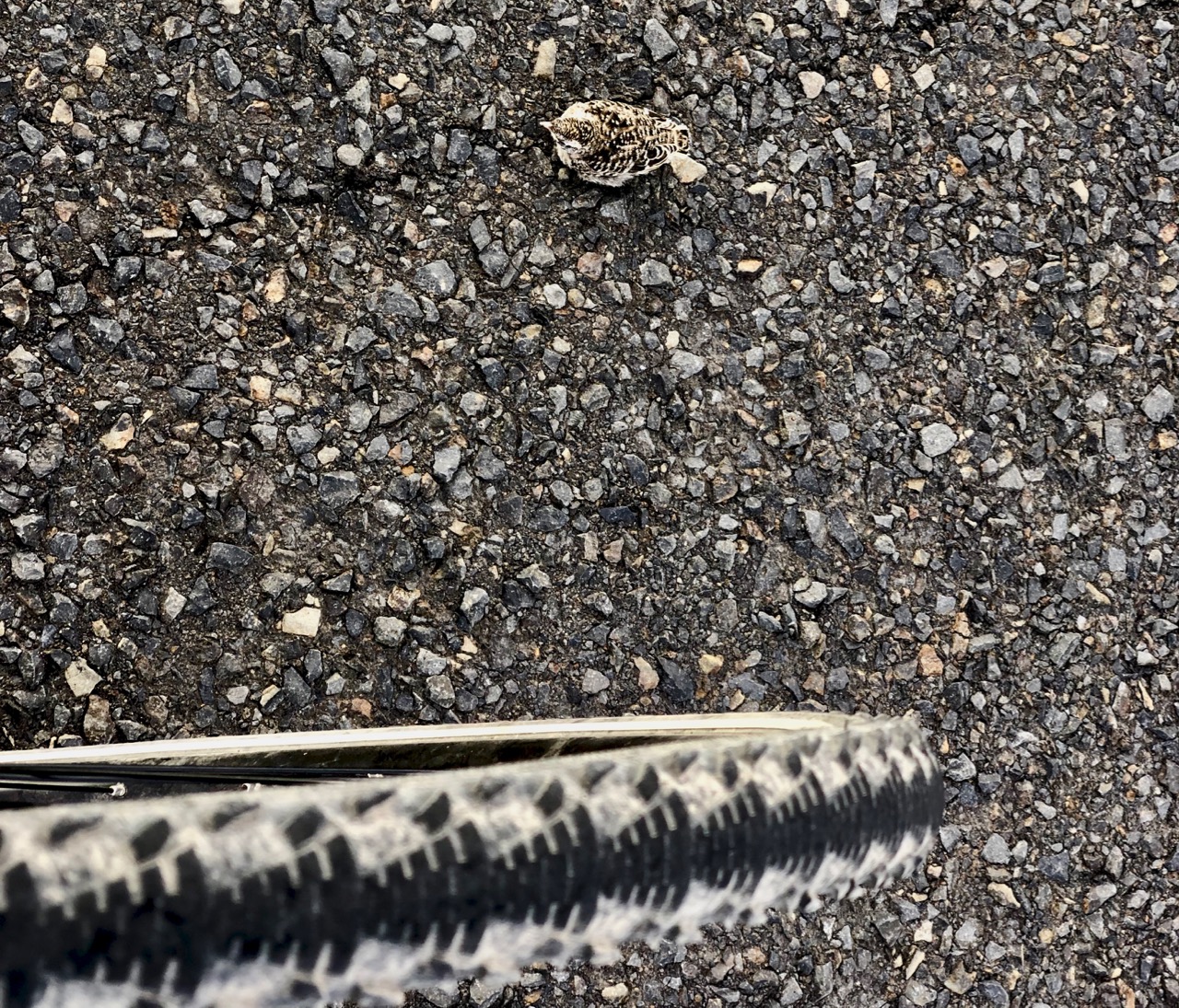 Near Sprague Lake I happened past a baby bird staying motionless on the roadway. Seems it had become separated from the Mom.