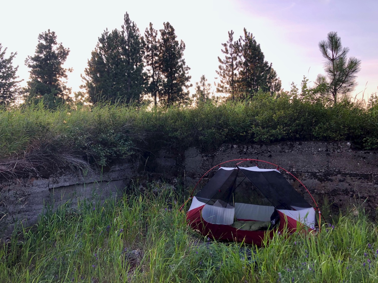 In these flatlands it wasn’t easy to find a discrete place to camp. Happily I came upon this old foundation sunk into the ground.