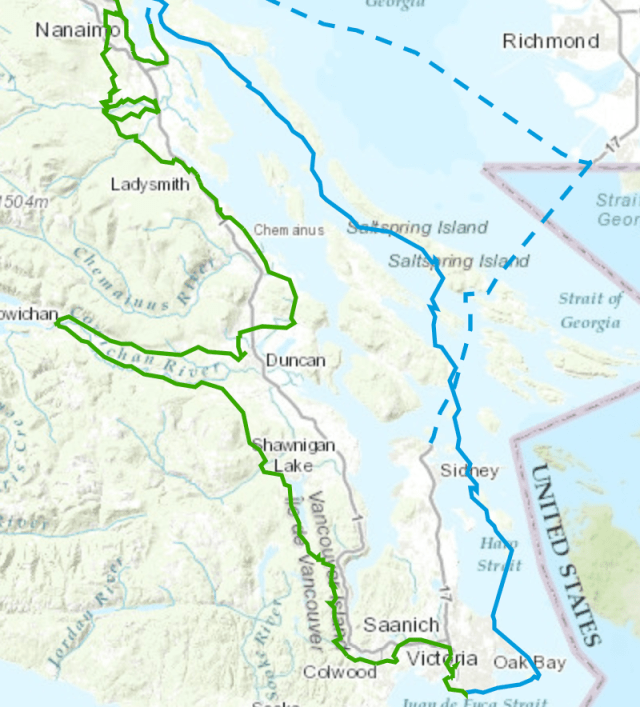 - Lake Cowichan to Victoria on the Cowichan Valley Trail