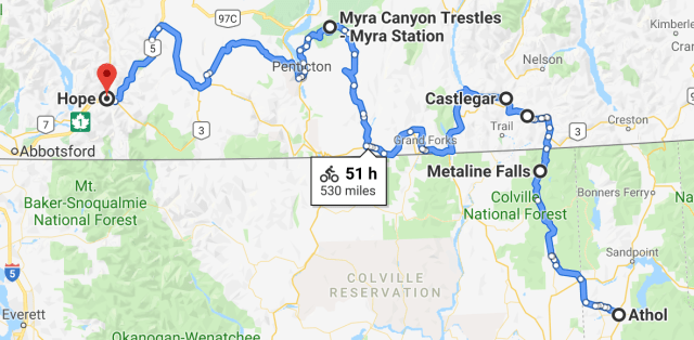 - BC, Washington State, north Idaho, back to BC