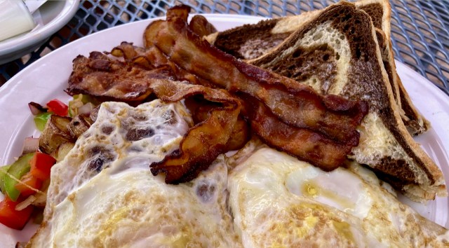 We had time to indulge in a big clubhouse brunch. I had classic bacon, eggs and coffee. Marble rye toast.