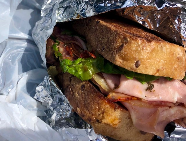 Instead of hitting the 19th hole, Rockin’ pulled out some gourmet sandwiches. We ate outside the wedding podium.