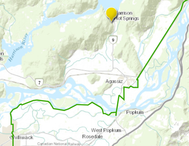 I started my ride from the course — missing the worst of greater Vancouver — arriving Harrison Hot Springs in about 4 hours.