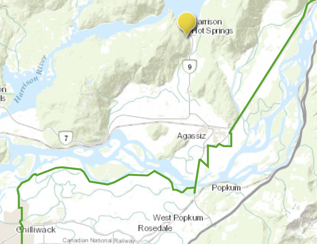 I started my ride from the course — missing the worst of greater Vancouver — arriving Harrison Hot Springs in about 4 hours.