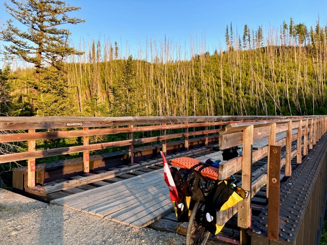 Finally I started up the long, sandy rail trail towards the most famous section of the Trans Canada Great Trail.