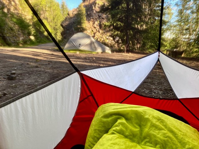 And finally set up my tent next to the only thru HIKER I’d seen on the KVR. It’s a far better cycling than hiking route.
