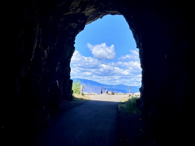 This is the Kettle Valley Rail trail, famed for tunnels and trestles.