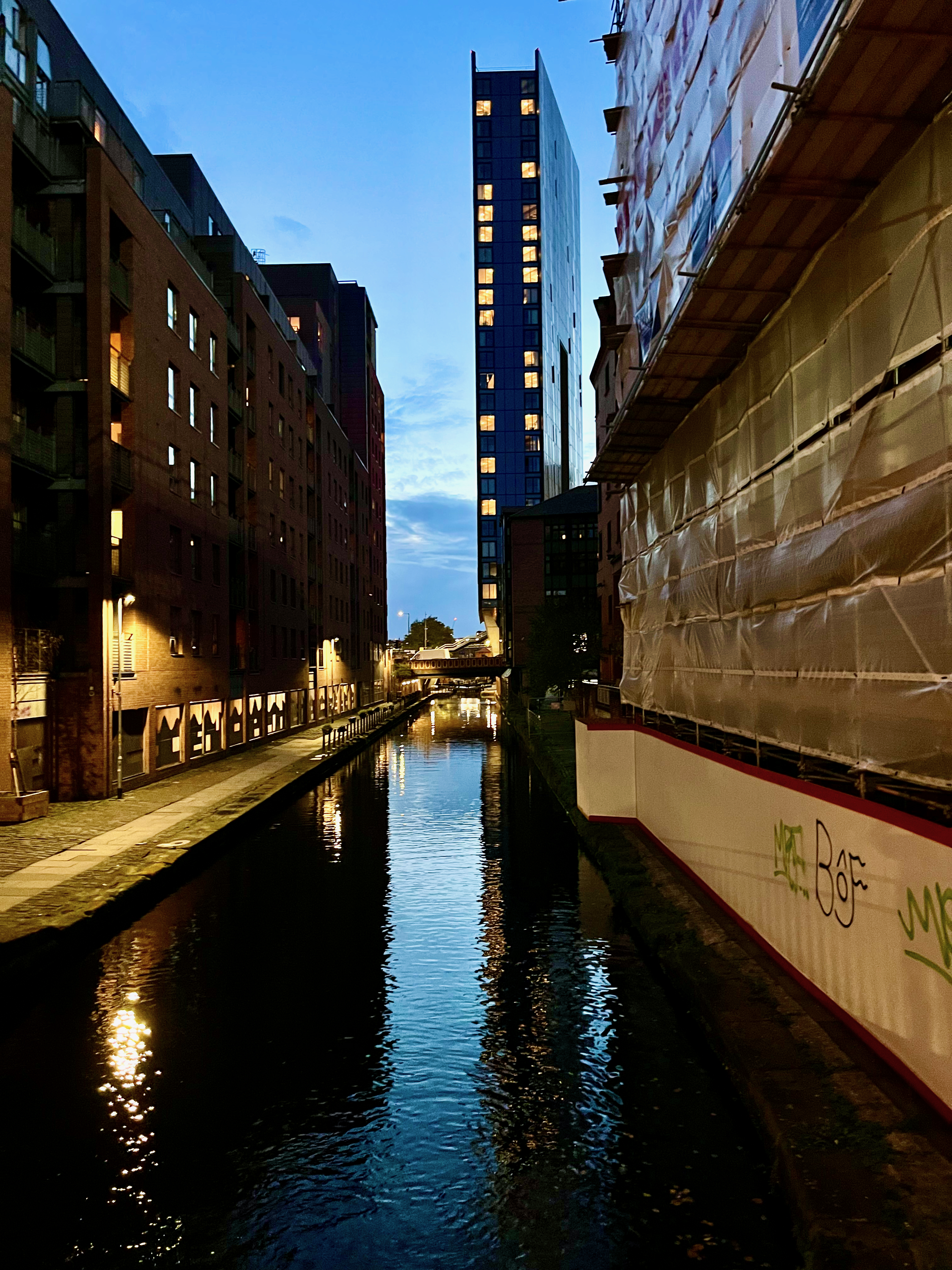 I stayed at a hostel on Potato Wharf where narrowboats are stored and travellers moor. Warren Long and family once parked here for 2 nights in a rented narrowboat.