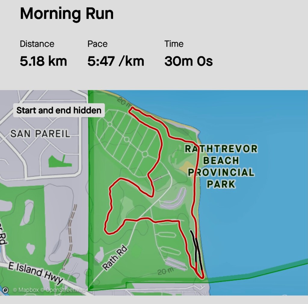 Back in Parksville B.C., I’ve been running 30 minutes every morning.