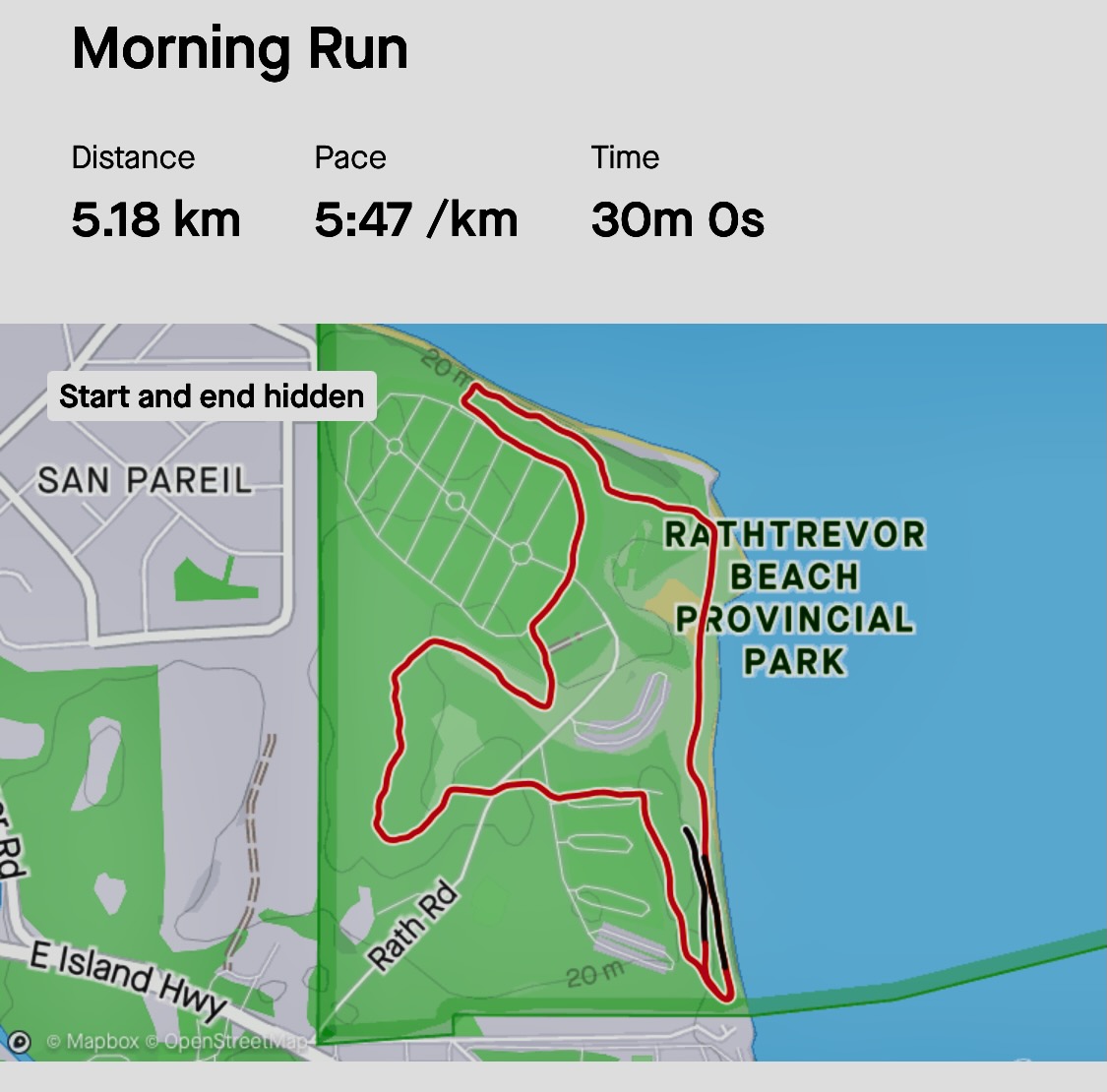 Back in Parksville B.C., I’ve been running 30 minutes every morning.
