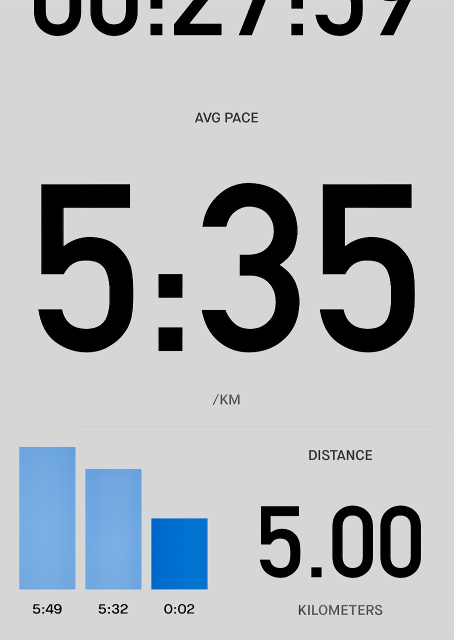 UPDATE ➙ best pace, so far, is 5:35 min. / km.