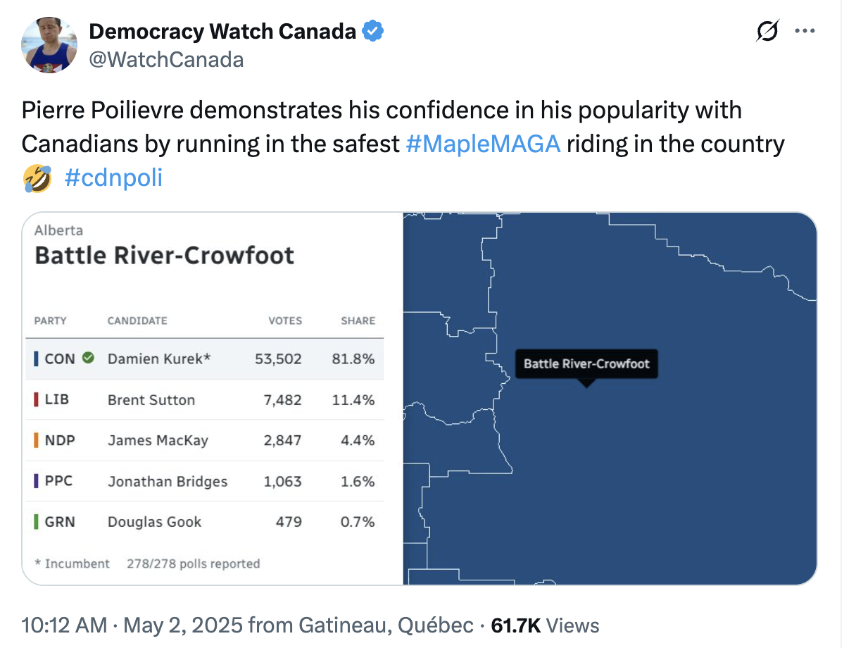 In the rest-of-Canada, this ties Poilievre to Alberta premier Smith ➙ a right wing extremist who wants to be the 51st U.S. state. 😀
