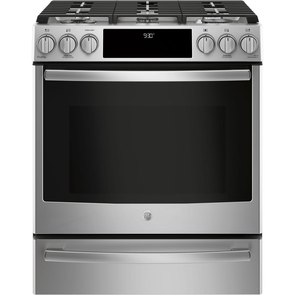 Profile 5.6 cu. ft. Smart Slide-In Gas Range with Self-Cleaning Convection in Stainless Steel