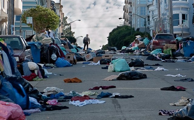 In a flashback, a bulldozer razes palm trees while clearing a rainforest in China that disturbs the natural habitat of some bats. One bat finds shelter in a pig farm and drops an infected piece of banana, which is eaten by a pig. The pig is slaughtered and prepared by a chef in a Macau casino, who transmits the virus to Beth (Paltrow) in a handshake.